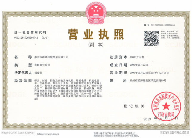 泰州市海鋒機械制造有限公司——發(fā)電機組專業(yè)制造商!