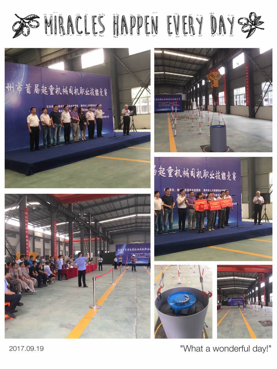 江蘇省泰州市首屆起重機(jī)械司機(jī)職業(yè)技能競(jìng)賽在泰州市海鋒機(jī)械制造有限公司隆重展開。現(xiàn)場(chǎng)匯聚了全市最優(yōu)秀的起重司機(jī),勇奪第一稱號(hào)。下為現(xiàn)場(chǎng)圖片: